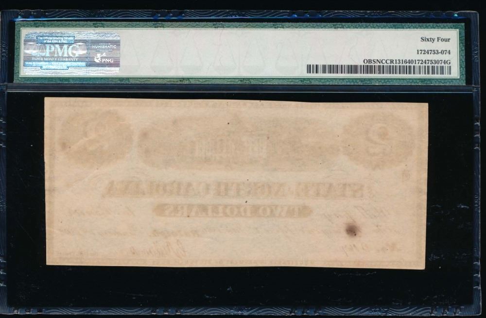 One 1863 $2 North Carolina Obsolete Note PMG 64.
