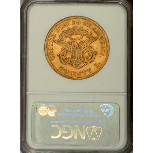 <B>1863 $20 AU50 NGC.</B></I> An ever-popular example of a $20 that experienced ever-so-slight circulation during the Civil War. Who may have held this piece adds to its desirability as well as consistently textured surfaces free of any major marks.<BR><BR><b>Shipping:</b> Coin/Currency (<a target="_blank" href="http://www.heritageauctions.com/common/shipping.php">view shipping information</a>)