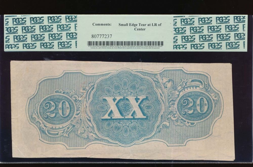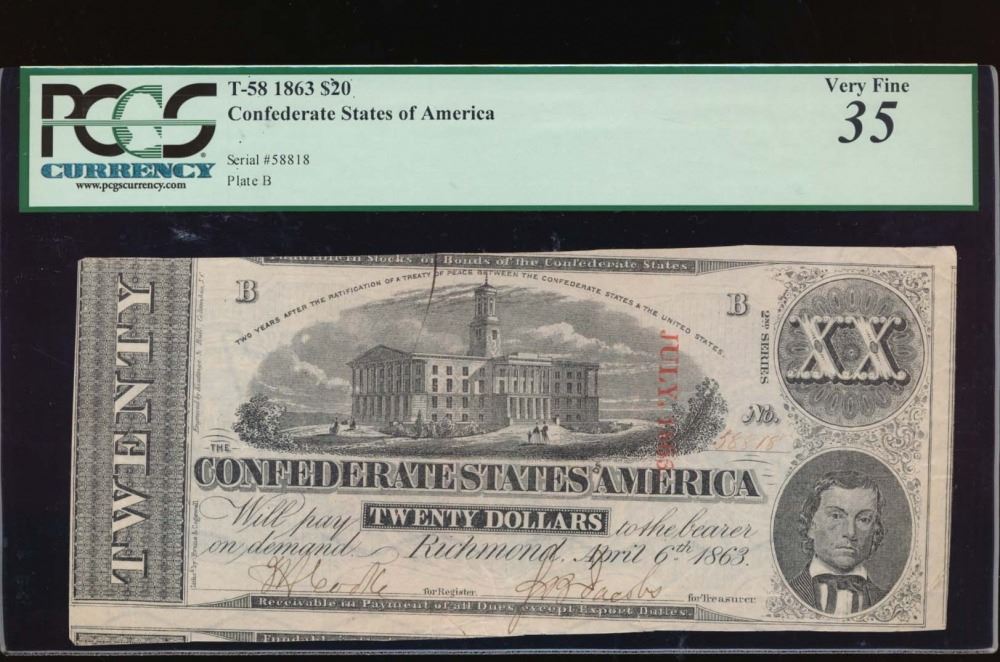 One 1863 $20 Confederate States of America Note PCGS 35.
