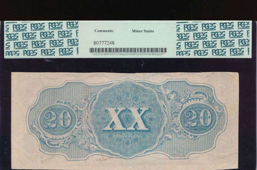 One 1863 $20 Confederate States of America Note PCGS 53.