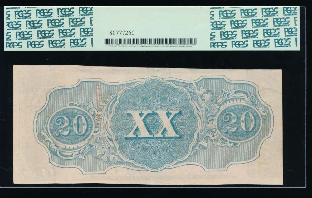 One 1863 $20 Confederate States of America Note PCGS 53.