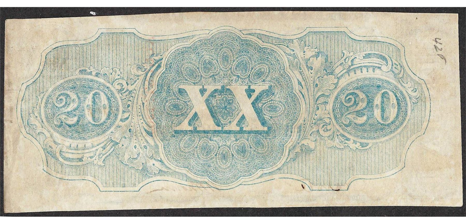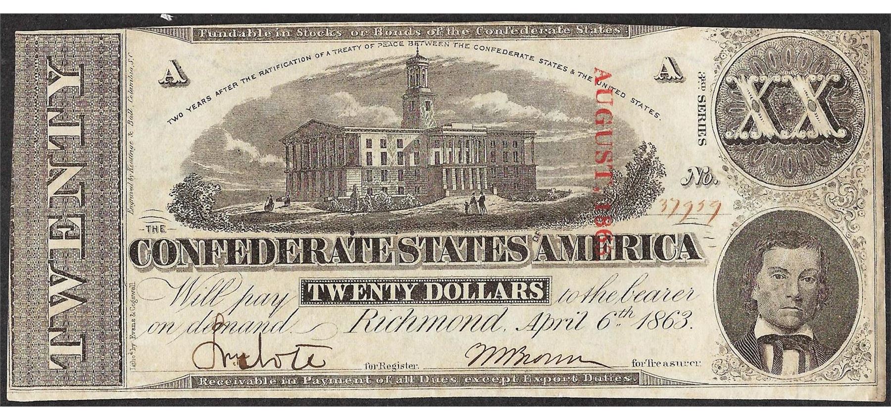 One 1863 $20 Confederate States of America Note.