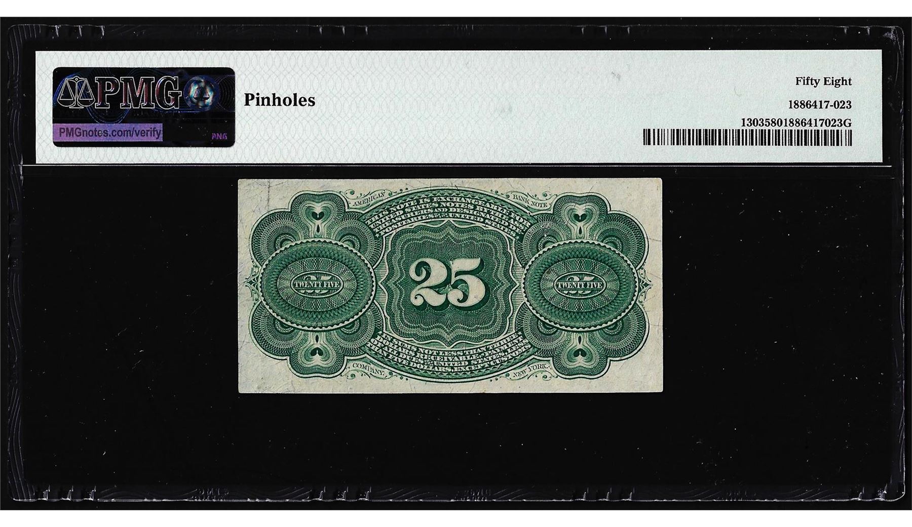 One 1863 25 Cents Fourth Issue Fractional Note Fr.1303 PMG Ch. About Uncirculated 58. PMG Certified.