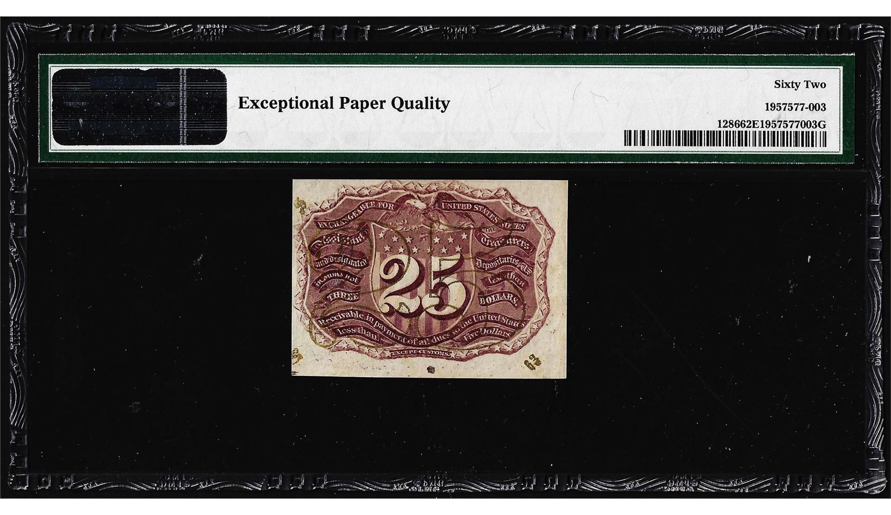 One 1863 25 Cents Second Issue Fractional Note Fr.1286 PMG Uncirculated 62EPQ.