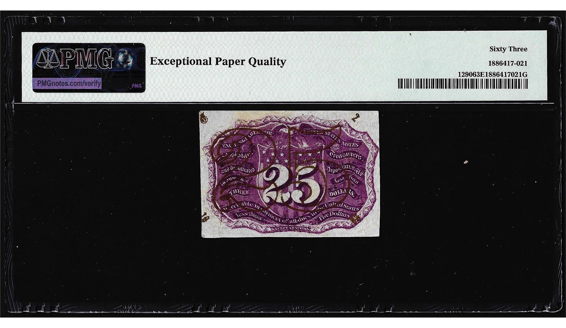 1863 25 Cents Second Issue Fractional Note Fr.1290 PMG Choice Uncirculated 63EPQ