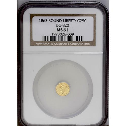1863 25C Liberty Round 25 Cents, BG-820, R.5, MS61 NGC 1863[25C] Liberty Round 25 Cents, BG-820, R.5