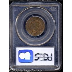 <table><tr><td><TABLE cellSpacing=0 cellPadding=0 width="100%" bgColor=#000000 border=0><TBODY> <TR><TD width="100%"><TABLE cellSpacing=1 cellPadding=3 width="100%" border=0><TBODY><TR><TD width="100%" bgColor=#79735c><FONT face=arial color=#ffffff size=3><B>Description</B> </FONT></TD></TR><TR><TD width="100%" bgColor=#ffffff><FONT face=arial size=2><B>1863 2C Two Cents, Judd-305, Pollock-370, R.4, PR63 Red and Brown PCGS.</B></I> The popular Washington obverse with GOD AND OUR COUNTRY at the top, while the reverse is similar to the adopted design but the word CENTS is sharply curved. Struck in bronze with a plain edge. Mostly brown over the central devices and in the exposed fields, with lighter golden-tan surviving in the recesses.<BR><I>From The New Millennium Collection.</B></I> </FONT></TD></TR></TBODY></TABLE></TD></TR></TBODY></TABLE><BR><A name=PricesRealized></A><TABLE cellSpacing=0 cellPadding=0 width="100%" bgColor=#000000 border=0><TBODY><TR><TD width="100%"><TABLE cellSpacing=1 cellPadding=3 width="100%" border=0><TBODY><TR><TD width="100%" bgColor=#79735c><A name=PR><FONT face=arial color=#ffffff size=3><B>Previous Prices from Heritage Auctions</B> </FONT></A></TD></TR><TR><TD bgColor=#f6f6ed><TABLE cellSpacing=0 cellPadding=0 width="100%" border=1><TBODY><TR><TD align=middle width="33%"><B>Date</B></TD><TD align=middle width="33%"><B>Service</B></TD><TD align=middle width="33%"><B>Price</B></TD></TR><TR bgColor=whitesmoke><TD width="33%"><B>06/08/2002</B></TD><TD width="33%">PCGS</TD><TD width="33%">$1,610.00</TD></TR></TBODY></TABLE></TD></TR><TR><TD bgColor=#ffffff><FONT face=arial size=1 ?>PLEASE NOTE: All prices realized reflect the final hammer price PLUS the buyer's premium in auctions that charge a buyer's premium. Each item has a notation at the top of the listing indicating whether that lot included a buyer's premium. Example: A item that sells with a final hammer price of $100 and a 20% buyer's premium will display with a price realized of $120. All information listed is intended to be as accurate as possible, but errors are possible. Please use this guide carefully and inform us of any inaccuracies. </FONT></TD></TR></TBODY></TABLE></TD></TR></TBODY></TABLE><BR><TABLE cellSpacing=0 cellPadding=0 width="100%" bgColor=#000000 border=0><TBODY><TR><TD width="100%"><TABLE cellSpacing=1 cellPadding=3 width="100%" border=0><TBODY><TR><TD width="100%" bgColor=#79735c colSpan=6><FONT face=arial color=#ffffff size=3><B>Price Guide*</B> </FONT></TD></TR><TR bgColor=#f6f6ed><TD align=middle><B>Grade</B> </TD><TD align=middle><B>Coin World<BR>(Trends)</B> </TD><TD align=middle><B>Numismedia<BR>Retail</B> </TD><TD align=middle><B>Numismedia<BR>Wholesale</B> </TD><TD align=middle><B>Coin<BR>Universe</B> </TD><TD align=middle><B>Heritage<BR>Value Index</B> </TD></TR><TR bgColor=#ffffff><TD align=middle>62</TD><TD align=right>---</TD><TD align=right>---</TD><TD align=right>---</TD><TD align=right>---</TD><TD align=right>---</TD></TR><TR style="FONT-WEIGHT: bold" bgColor=#cccfdd><TD align=middle>63</TD><TD align=right>---</TD><TD align=right>---</TD><TD align=right>---</TD><TD align=right>---</TD><TD align=right>---</TD></TR><TR bgColor=#ffffff><TD align=middle>64</TD><TD align=right>---</TD><TD align=right>---</TD><TD align=right>---</TD><TD align=right>---</TD><TD align=right>---</TD></TR><TR bgColor=#ffffff><TD colSpan=6><FONT size=1>*All information listed is intended to be as accurate as possible, but errors are possible. No item may be returned or refused based on this information which is provided as a service to our customers. You should contact each pricing source directly to determine the accuracy of this information. </FONT></TD></TR></TBODY></TABLE></TD></TR></TBODY></TABLE><BR><TABLE cellSpacing=0 cellPadding=0 width="100%" bgColor=#000000 border=0><TBODY><TR><TD width="100%"><TABLE cellSpacing=1 cellPadding=3 width="100%" border=0><TBODY><TR><TD width="100%" bgColor=#79735c><FONT face=arial color=#ffffff size=3><B>Population Guide</B> </FONT></TD></TR><TR bgColor=#ffffff><TD align=middle><!-- Begin Output of Population Grid--><TABLE cellSpacing=0 cellPadding=0 width="100%" border=0><TBODY><TR><TD vAlign=center><TABLE cellSpacing=0 width="100%" border=1 cellsadding="3"><TBODY><TR><TD vAlign=center><TABLE cellSpacing=0 cellPadding=3 width="100%" border=1><TBODY><TR><TD vAlign=center align=middle bgColor=#f0f1e8 colSpan=2 <CENTER><FONT face=Arial size=2><B>PCGS Pop </B></FONT><CENTER></CENTER></TD><TD vAlign=center align=middle bgColor=#f0f1e8 colSpan=2><CENTER><FONT face=Arial size=2><B>NGC Pop</B></CENTER></FONT></TD></TR><TR><TD vAlign=center><FONT face=Arial size=2>(63)</FONT> </TD><TD vAlign=center align=right><FONT face=Arial size=2>3</FONT> </TD><TD vAlign=center><FONT face=Arial size=2>(63)</FONT> </TD><TD vAlign=center align=right><FONT face=Arial size=2>0</FONT> </TD></TR><TR><TD vAlign=center><FONT face=Arial size=2>(>63)</FONT> </TD><TD vAlign=center align=right><FONT face=Arial size=2>19</FONT> </TD><TD vAlign=center><FONT face=Arial size=2>(>63)</FONT> </TD><TD vAlign=center align=right><FONT face=Arial size=2>5</FONT> </TD></TR></TBODY></TABLE></TD></TR></TBODY></TABLE></TD></TR></TBODY></TABLE><!-- End Output of Population Grid--></TD></TR></TBODY></TABLE></TD></TR></TBODY></TABLE><BR><TABLE cellSpacing=0 cellPadding=0 width="100%" bgColor=#000000 border=0><TBODY><TR> Important notice: Heritage usually auctions material at the rate of 200-250 lots per hour. On some occasions eBay Live bid software or the Internet may not be able to keep up with the pace of the auction. We recommend placing a realistic absentee bid now as insurance to avoid disappointment. Occasionally the auctioneer may eliminate or reject an eBay Live bid, and the auctioneer may also reopen a lot after the close of the eBay live bidding (usually because we missed an audience bid), and may reject your bid even if it shows you as the winning bidder. By bidding via eBay Live, you agree t