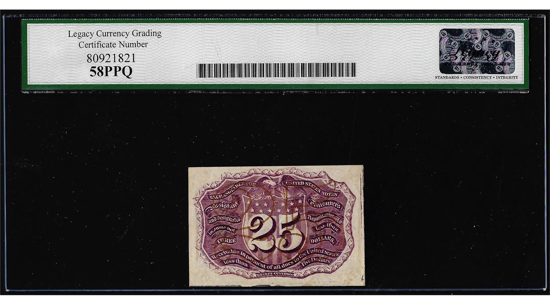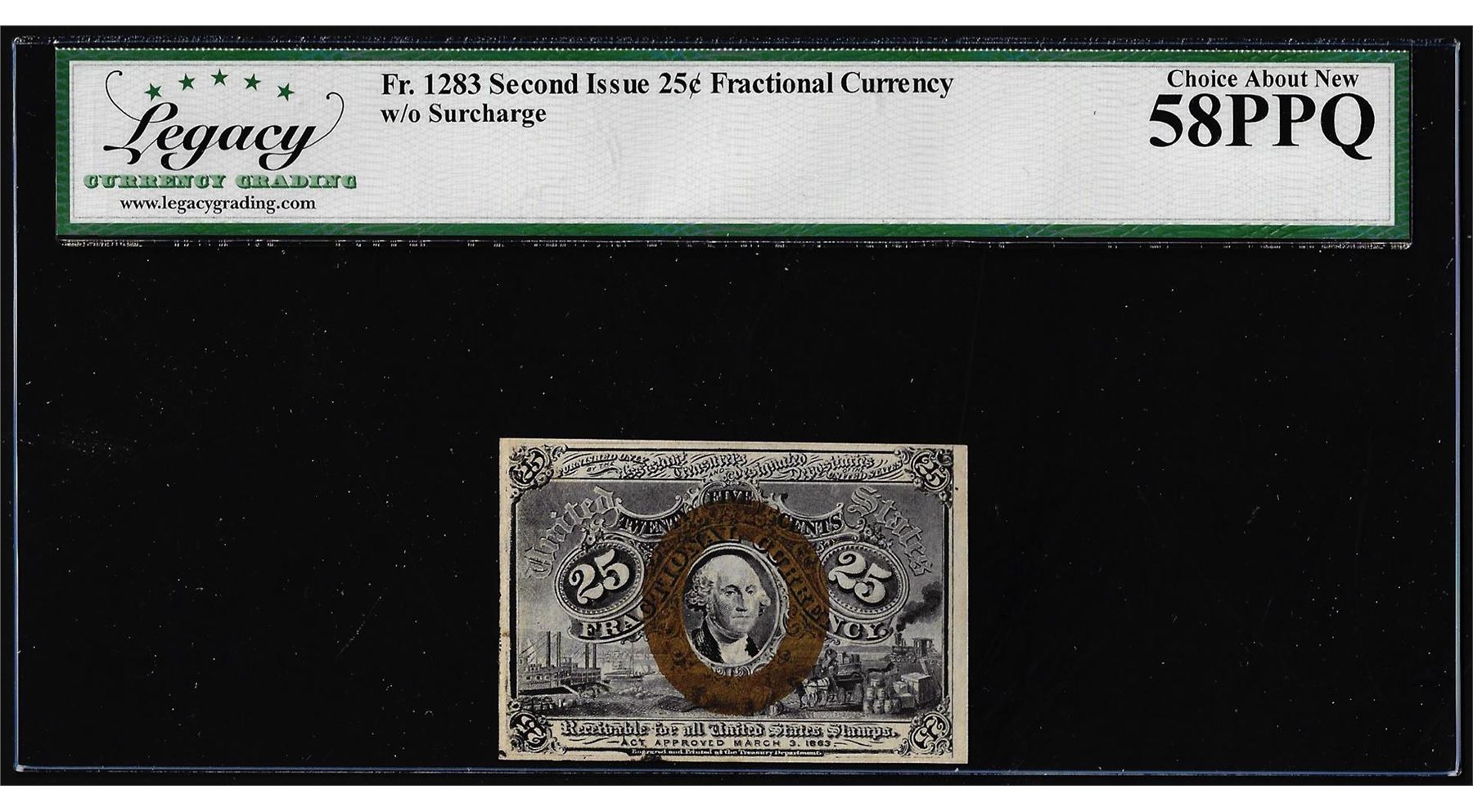 One 1863 2nd Issue 10 Cent Fractional Currency Note Fr.1283 Legacy Choice About New 58PPQ. Legacy Graded.