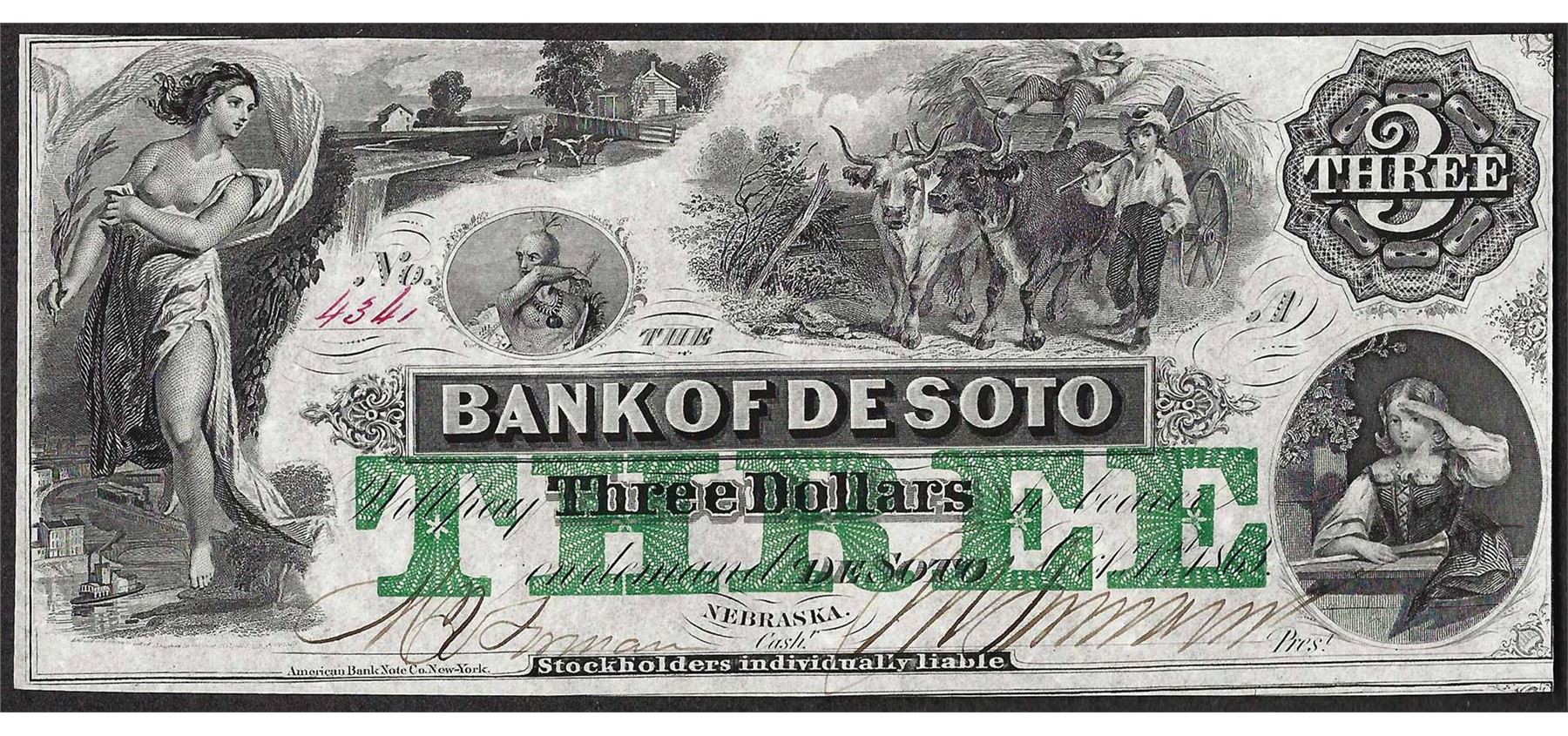 One 1863 $3 Bank of Desoto Obsolete Note.