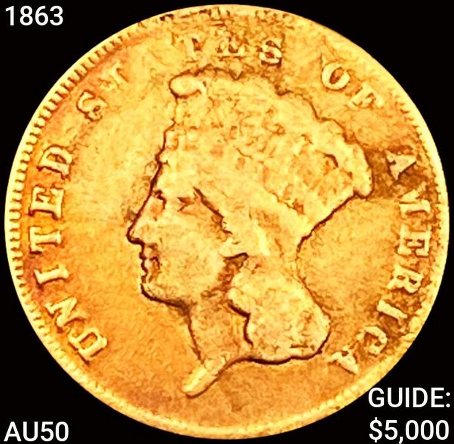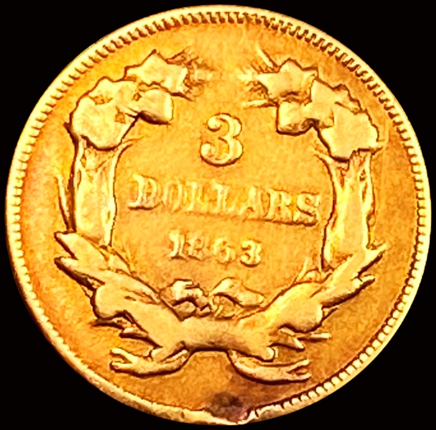 1863 $3 Gold Piece CLOSELY UNCIRCULATED