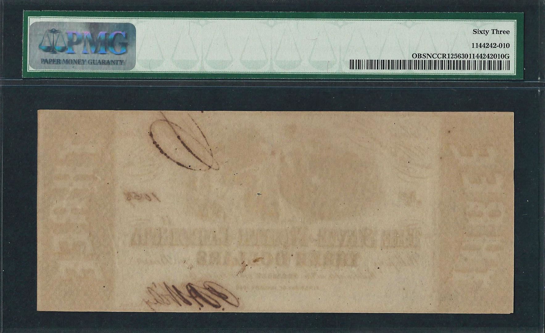 One 1863 $3 The State of North Carolina Obsolete Note PMG Choice Uncirculated 63. PMG Certified.