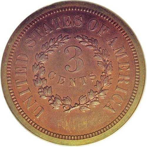 1863 3C Three Cents, Judd-319 Restrike, Pollock-384, R