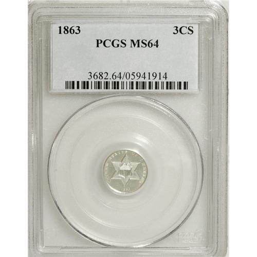 1863 3CS MS64 PCGS. A beautiful, untoned silver-white