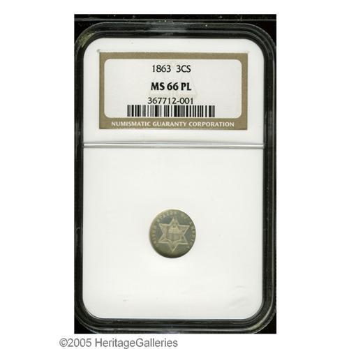 1863 3CS MS66 Prooflike NGC. A mere 21,000 business st 1863[3CS] MS66 Prooflike NGC.