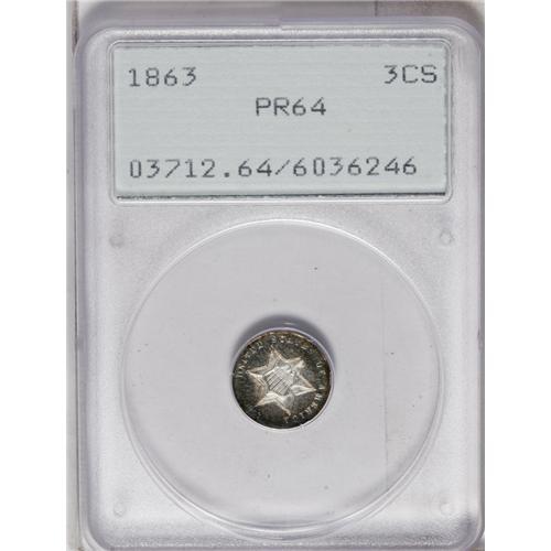 1863 3CS PR64 PCGS. A beautiful example of this type,