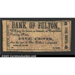 1863 5¢ Bank of Fulton, Atlanta, GA, Fine+.