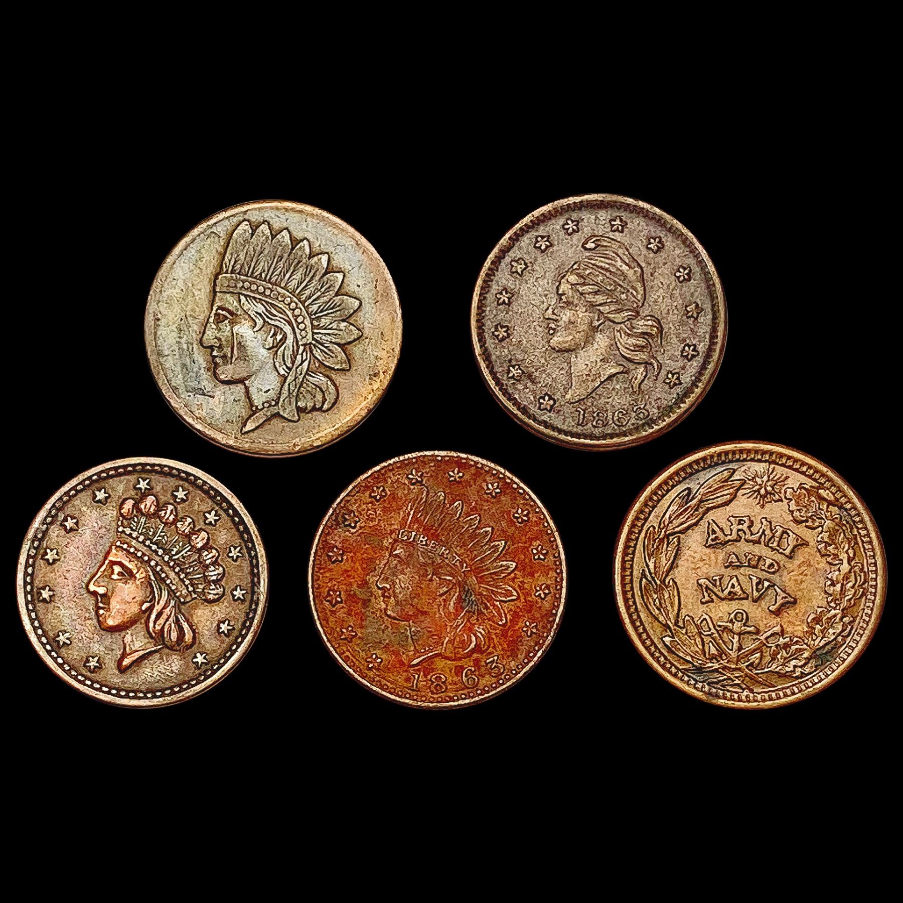1863 [5] Civil War Token Lot HIGH GRADE