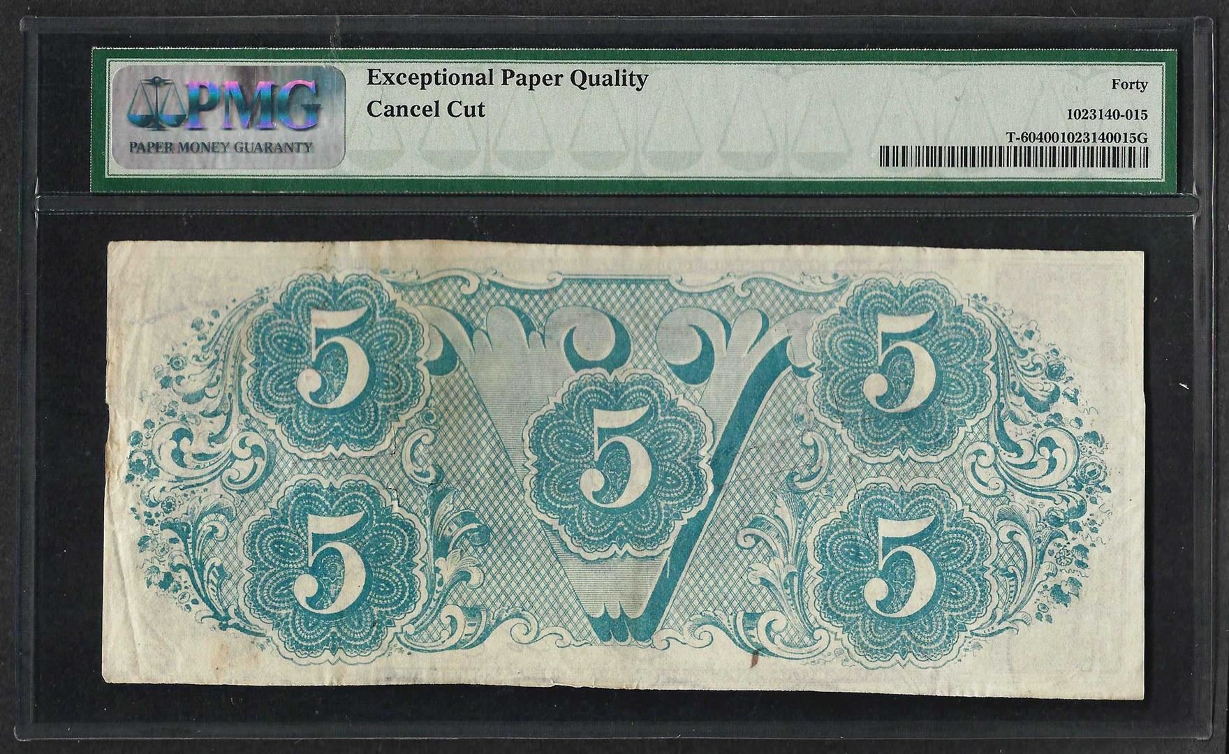 1863 $5 Confederate State of America Note T-60 PMG Extremely Fine 40