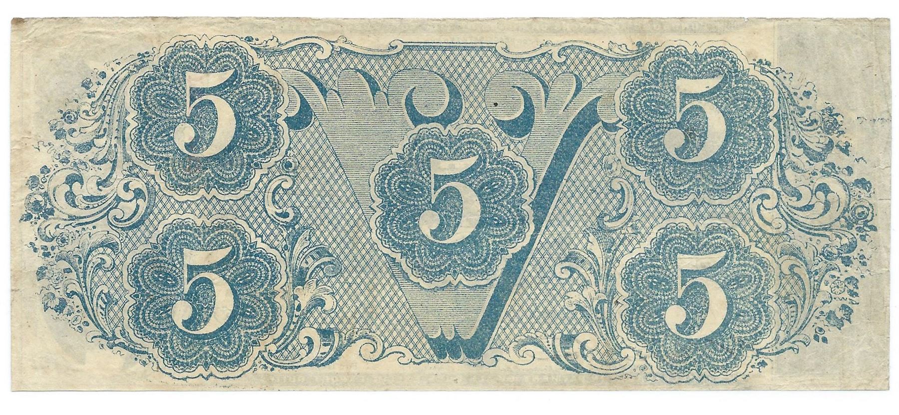 One 1863 $5 The Confederate States of America Note T-60 CC