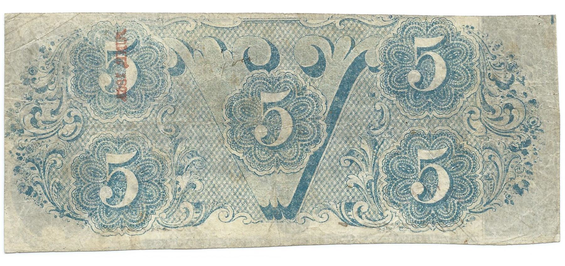 One 1863 $5 The Confederate States of America Note T-60 CC