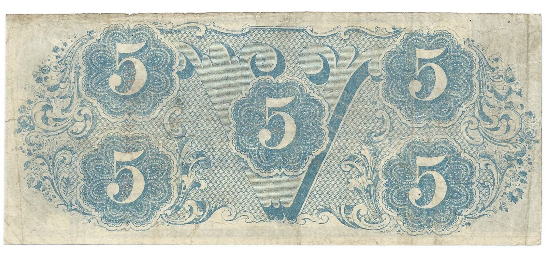 One 1863 $5 The Confederate States of America Note T-60 CC
