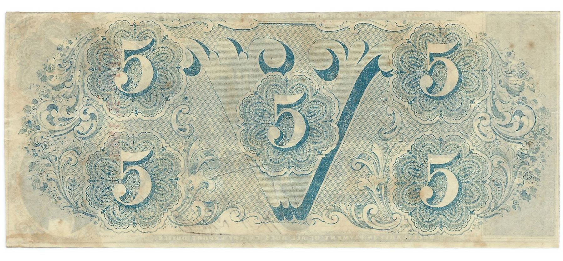 One 1863 $5 The Confederate States of America Note T-60 CC
