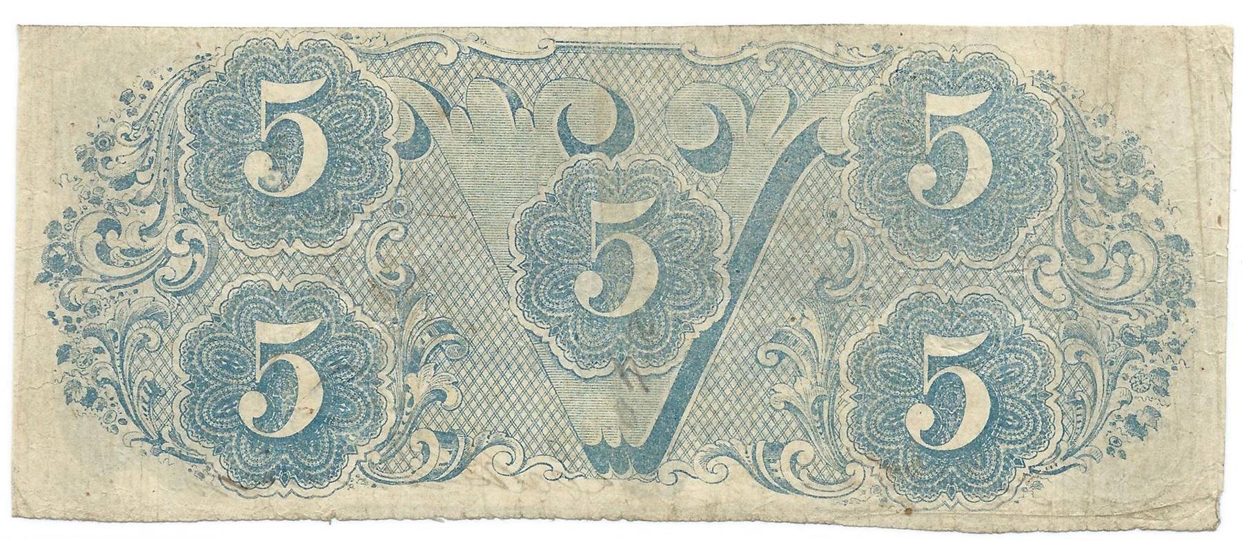 One 1863 $5 The Confederate States of America Note T-60 CC