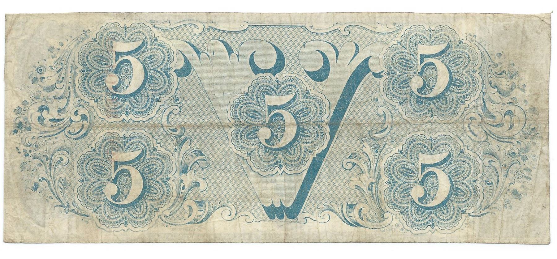 One 1863 $5 The Confederate States of America Note T-60 CC