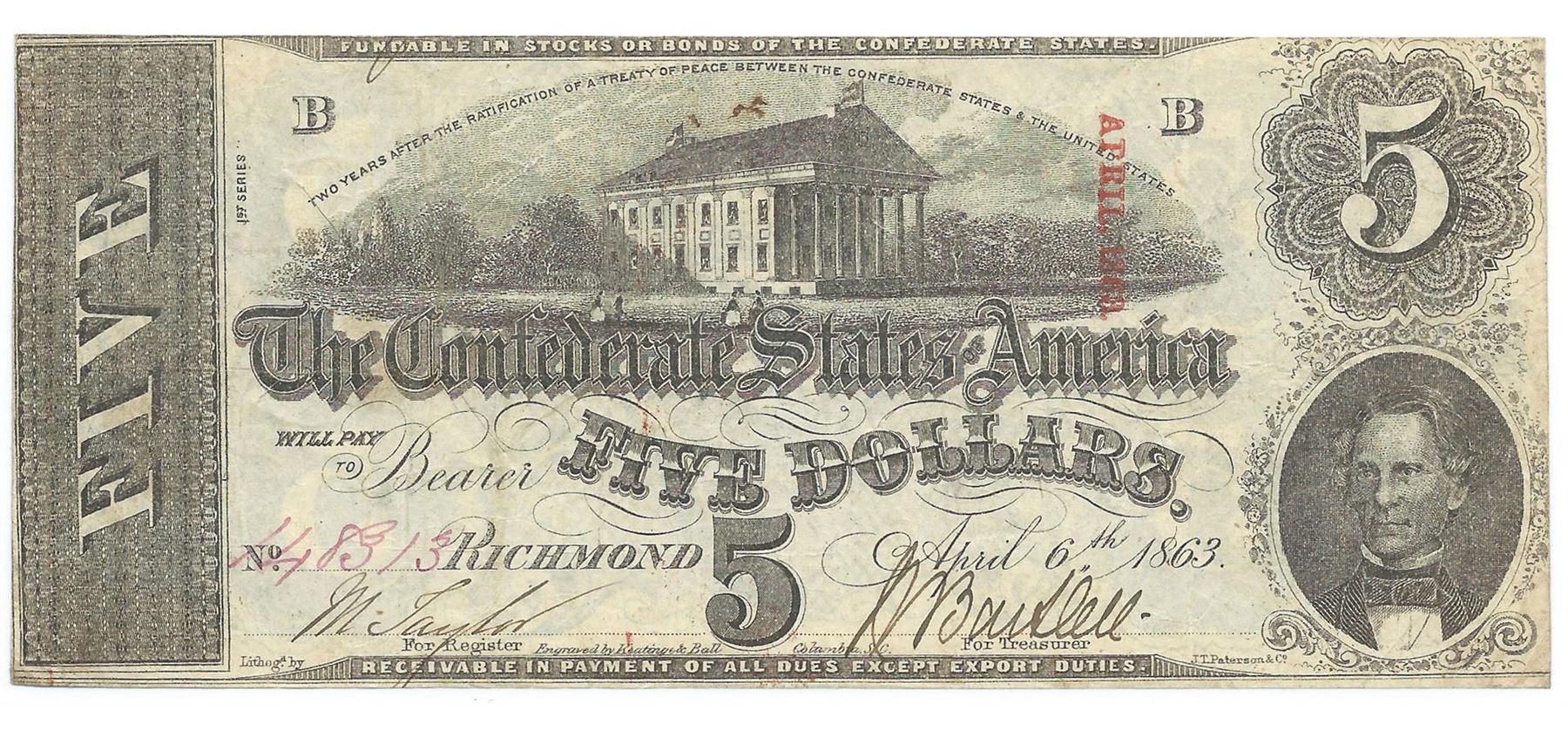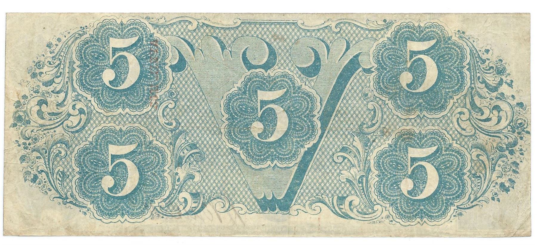 One 1863 $5 The Confederate States of America Note T-60 CC