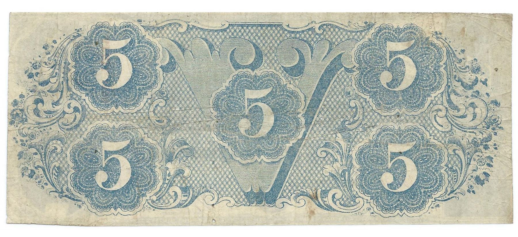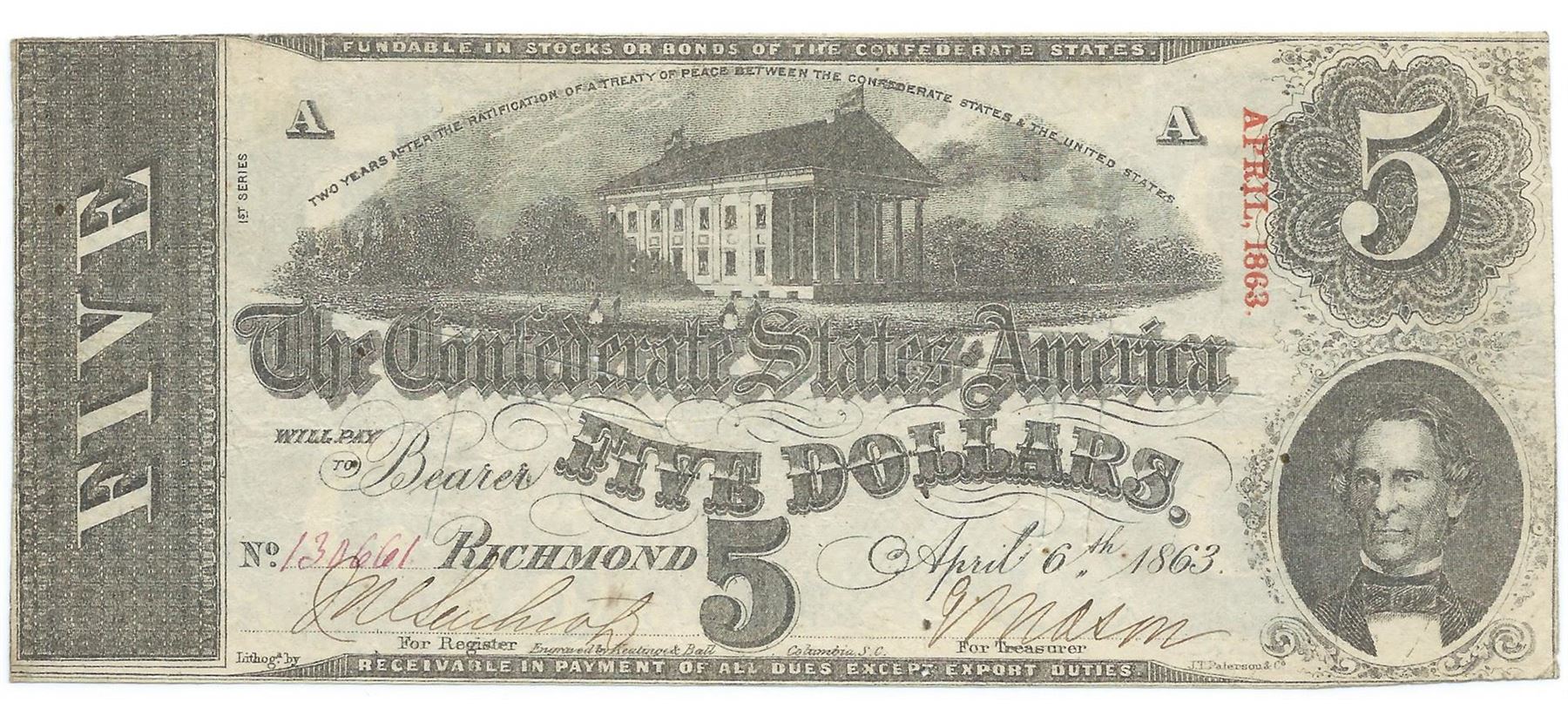 One 1863 $5 The Confederate States of America Note T-60 CC