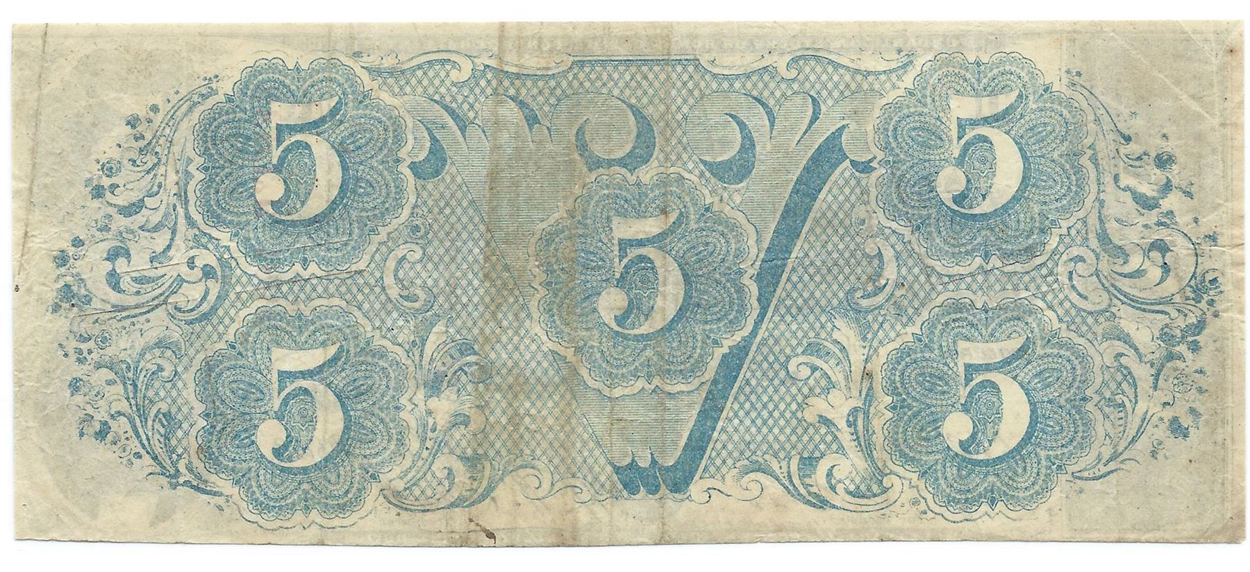 One 1863 $5 The Confederate States of America Note T-60 CC