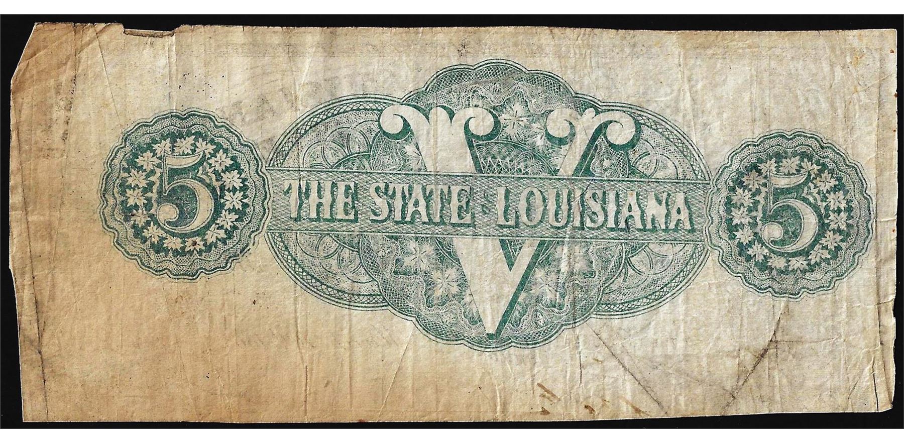 One 1863 $5 The State of Louisiana Baton Rouge, LA Obsolete Banknote.