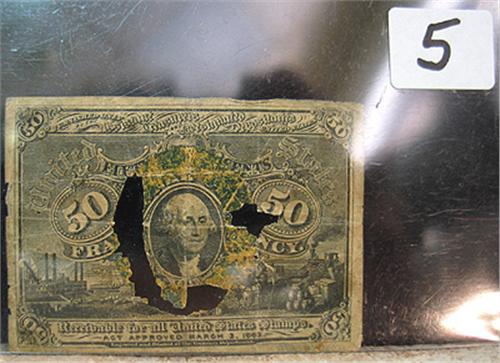 1863 50 Cent Fractional Currency (Damaged - Very Worn)