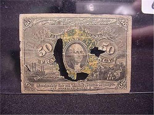 1863 50 Cent Fractional Currency (Damaged - Very Worn)