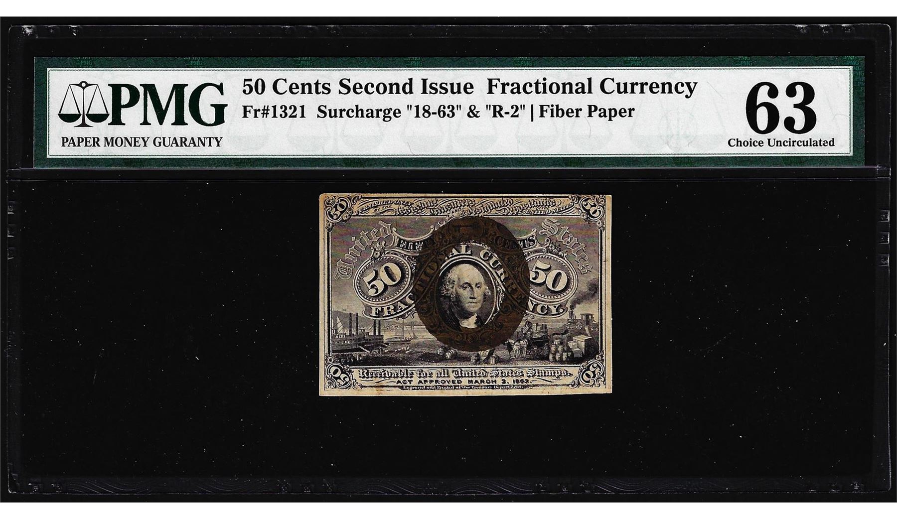 One 1863 50 Cent Second Issue Fractional Note Fr.1321 PMG Choice Uncirculated 63.