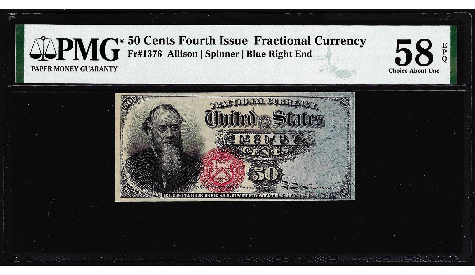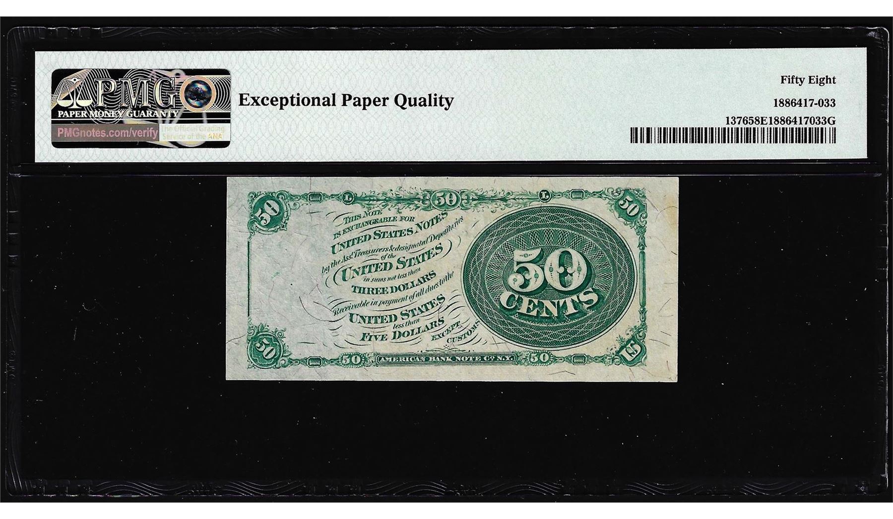 One 1863 50 Cents Fourth Issue Fractional Note Fr.1376 PMG Ch. About Uncirculated 58EPQ. PMG Certified.