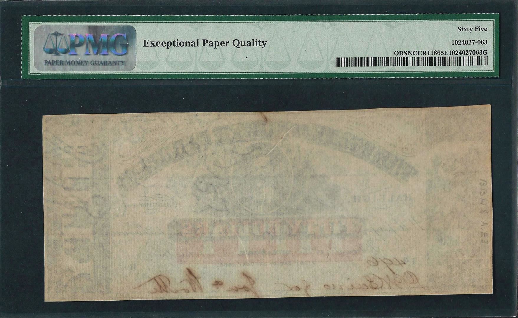 One 1863 $50 The State of North Carolina Obsolete Note PMG Gem Uncirculated 65EPQ. PMG Certified.