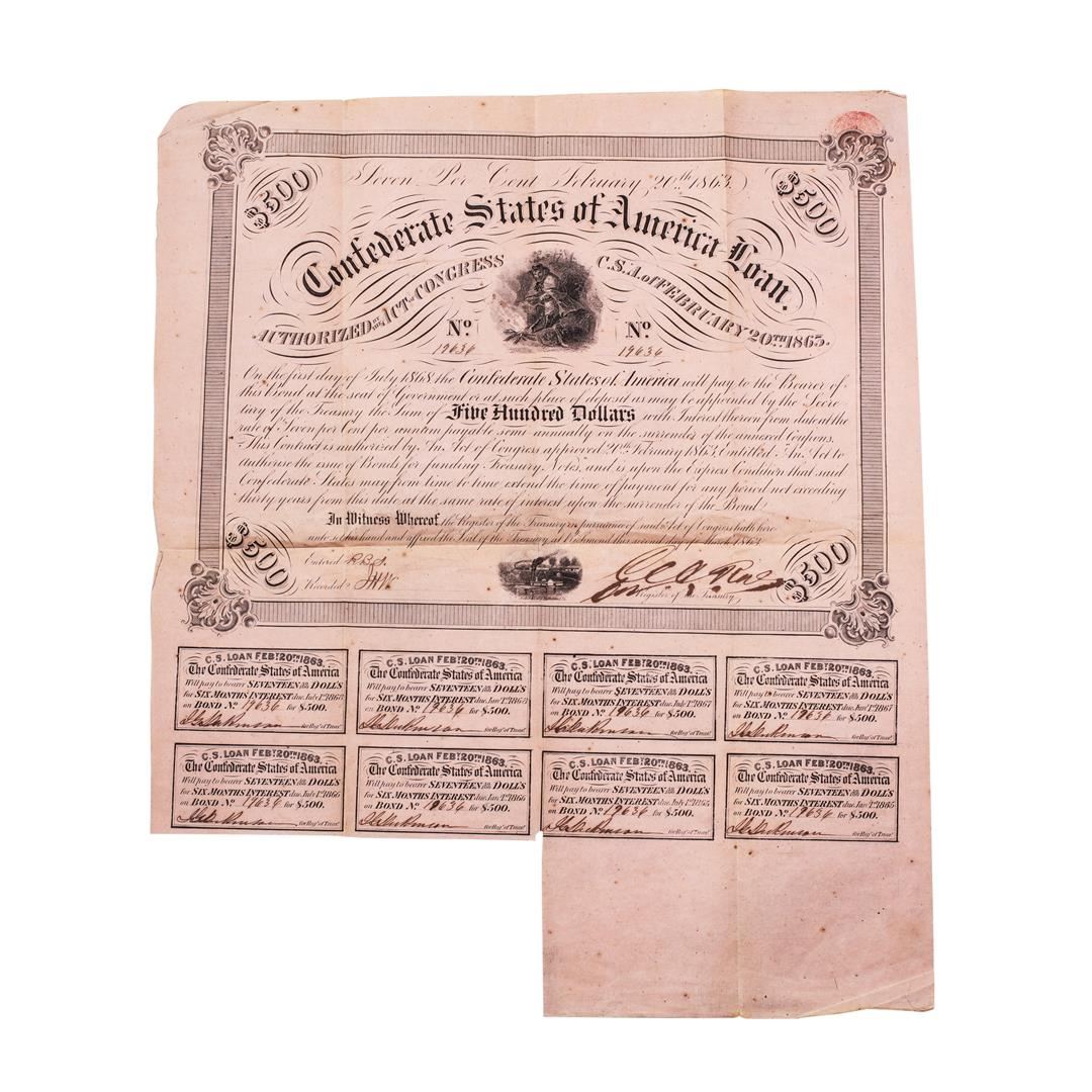One 1863 $500 Confederate Bond Obsolete Sheet Printed on Pink Paper B-221.