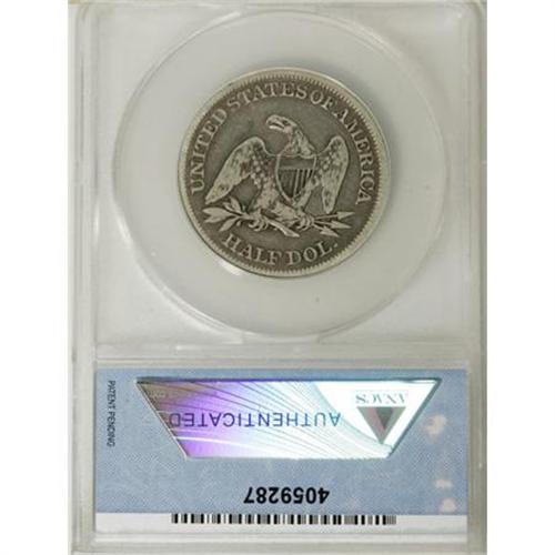 <B>1863 50C F12 ANACS.</B></I> NGC Census: (0/61). PCGS Population (0/75). Mintage: 503,200. Numismedia Wsl. Price for NGC/PCGS coin in F12: $54. (#6309)<BR><BR><B>Coin Engraver:</B> Christian Gobrecht<BR><BR><b>Shipping:</b> Coins & Currency (<a target="_blank" href="http://www.heritageauctions.com/common/shipping.php">view shipping information</a>)