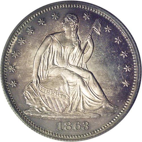1863 50C PR64 Cameo PCGS. The reverse is brilliant, wh 1863[50C] PR64 Cameo PCGS.