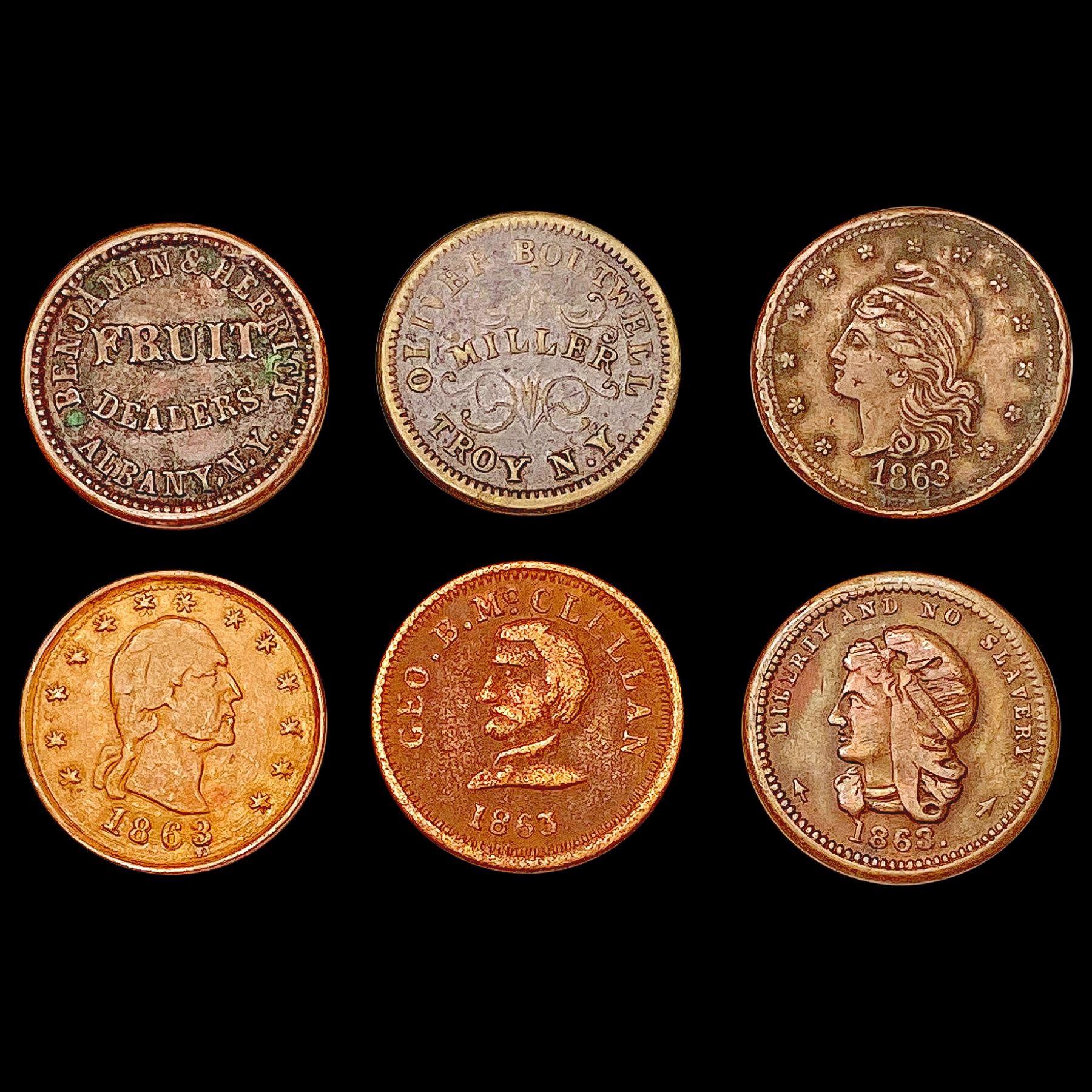 1863 [6] Civil War Token Lot HIGH GRADE