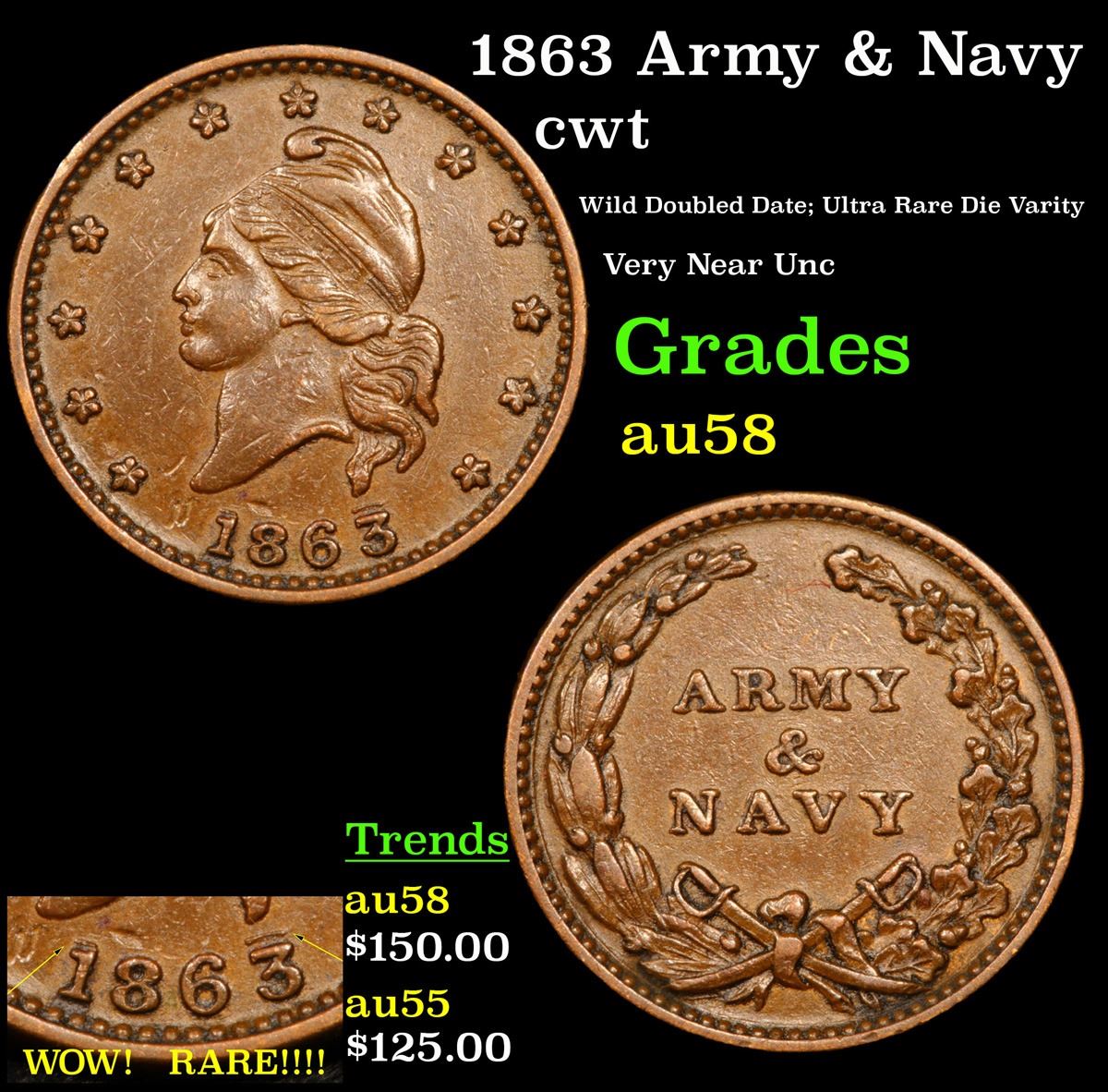 1863 Army & Navy Civil War Token 1c Grades Choice AU/BU Slider.