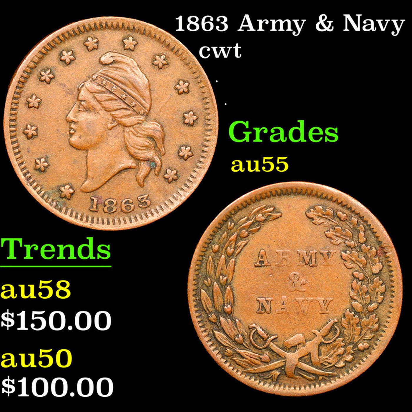 1863 Army & Navy Civil War Token 1c Grades Choice AU.
