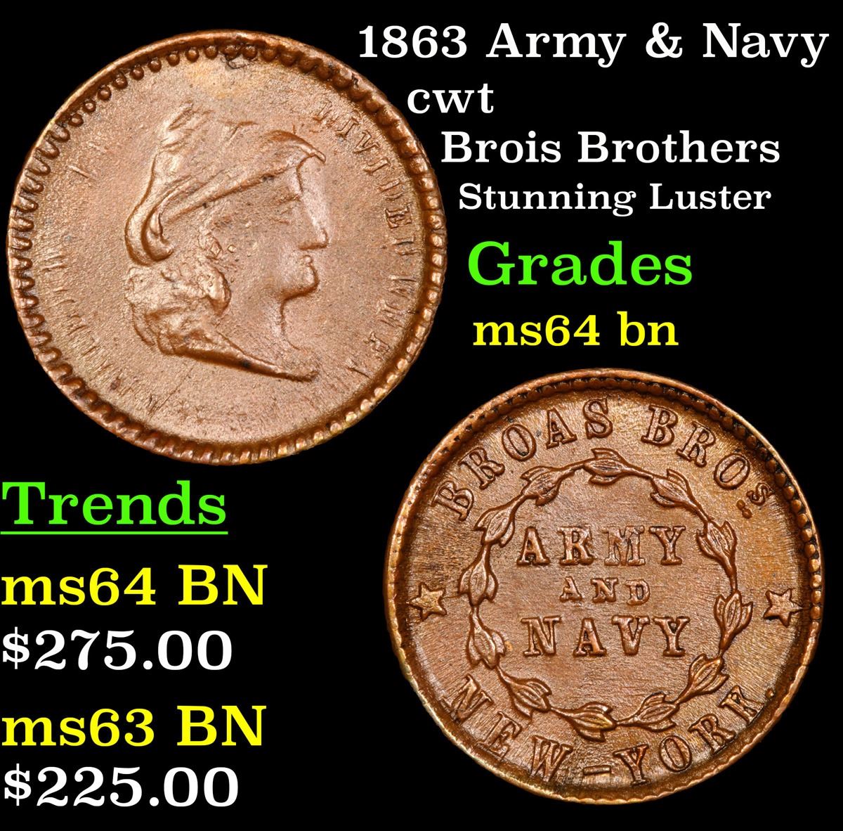 1863 Army & Navy Brois Brothers Stunning Luster Civil War Token 1c Grades Choice Unc BN.