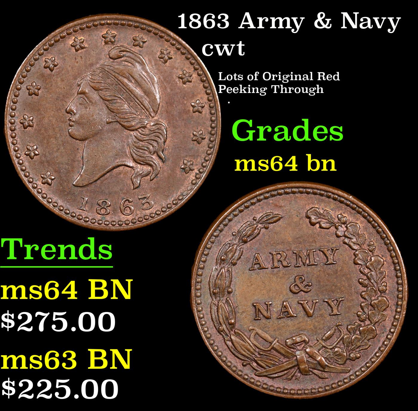 1863 Army & Navy Civil War Token 1c Grades Choice Unc BN.