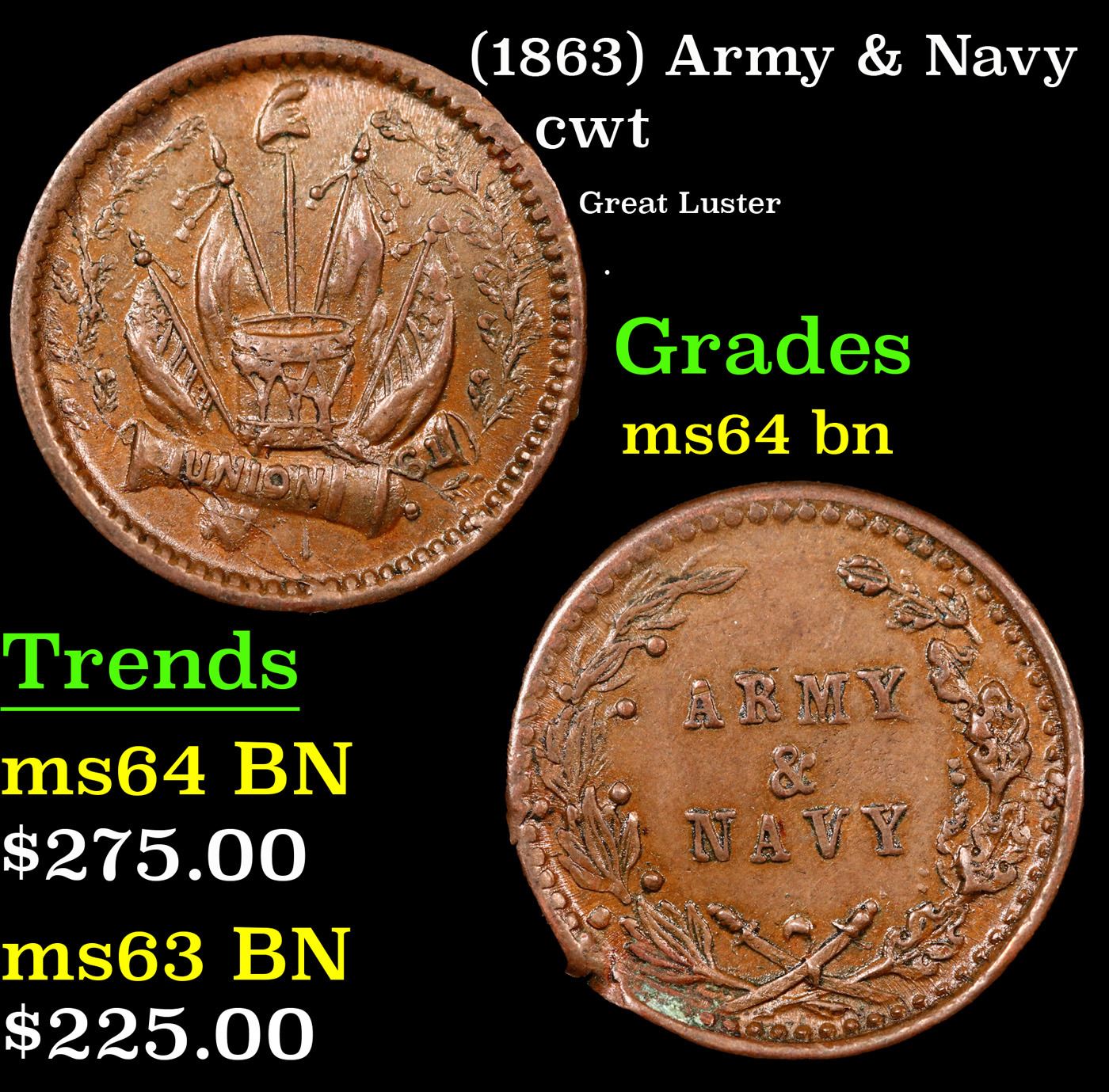 (1863) Army & Navy Civil War Token 1c Grades Choice Unc BN.