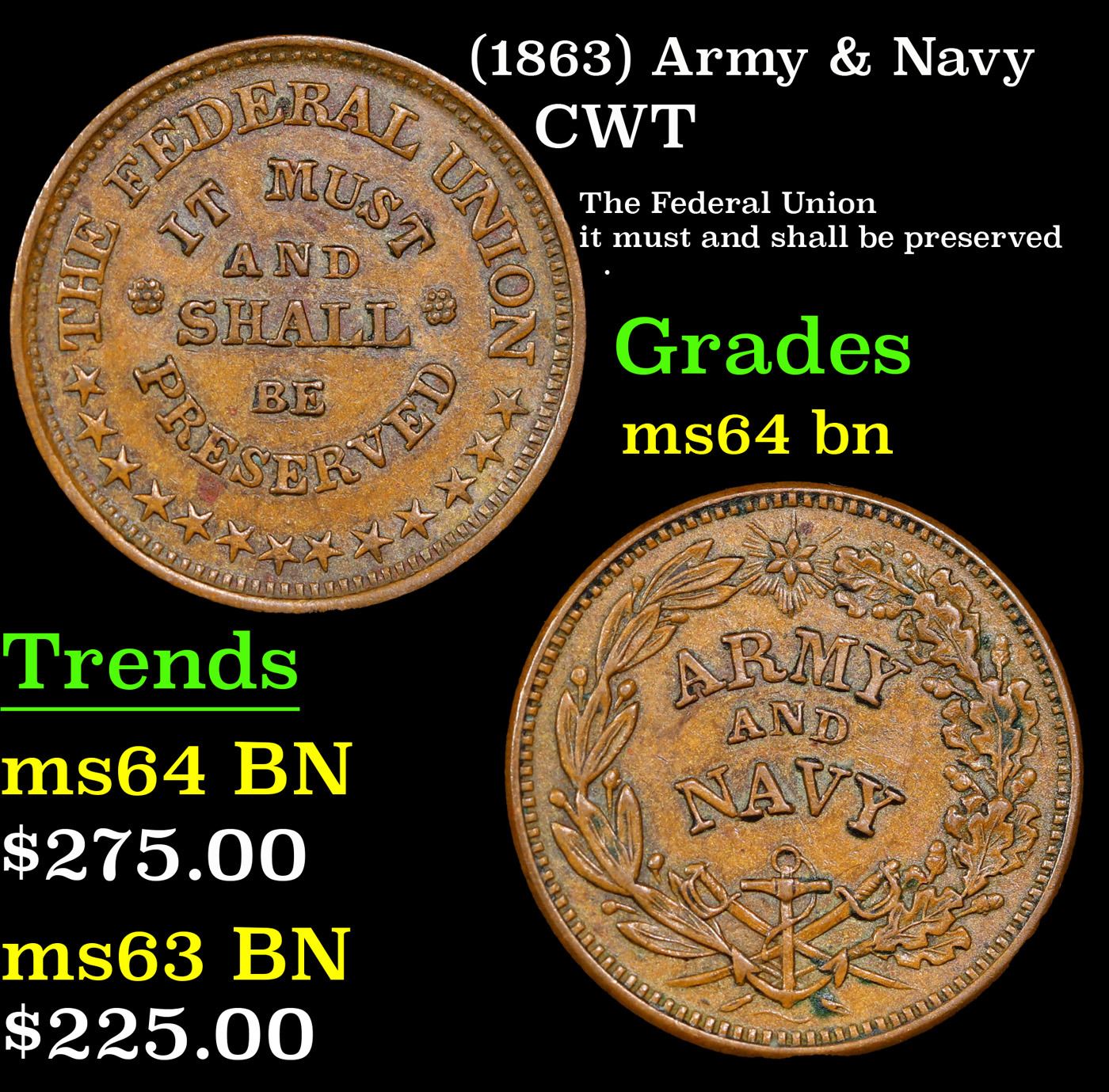 (1863) Army & Navy Civil War Token 1c Grades Choice Unc BN.