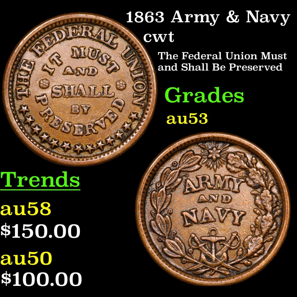 1863 Army & Navy The Federal Union Must and Shall Be Preserved . Civil War Token 1c Grades Select AU.