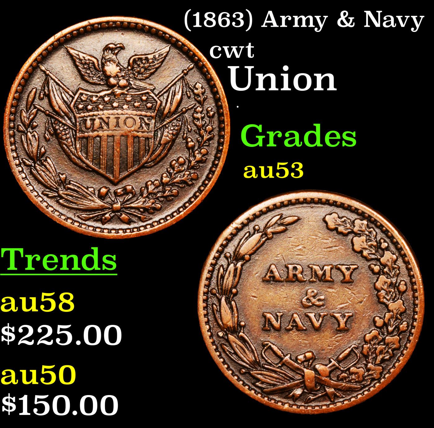 (1863) Army & Navy Civil War Token 1c Grades Select AU.