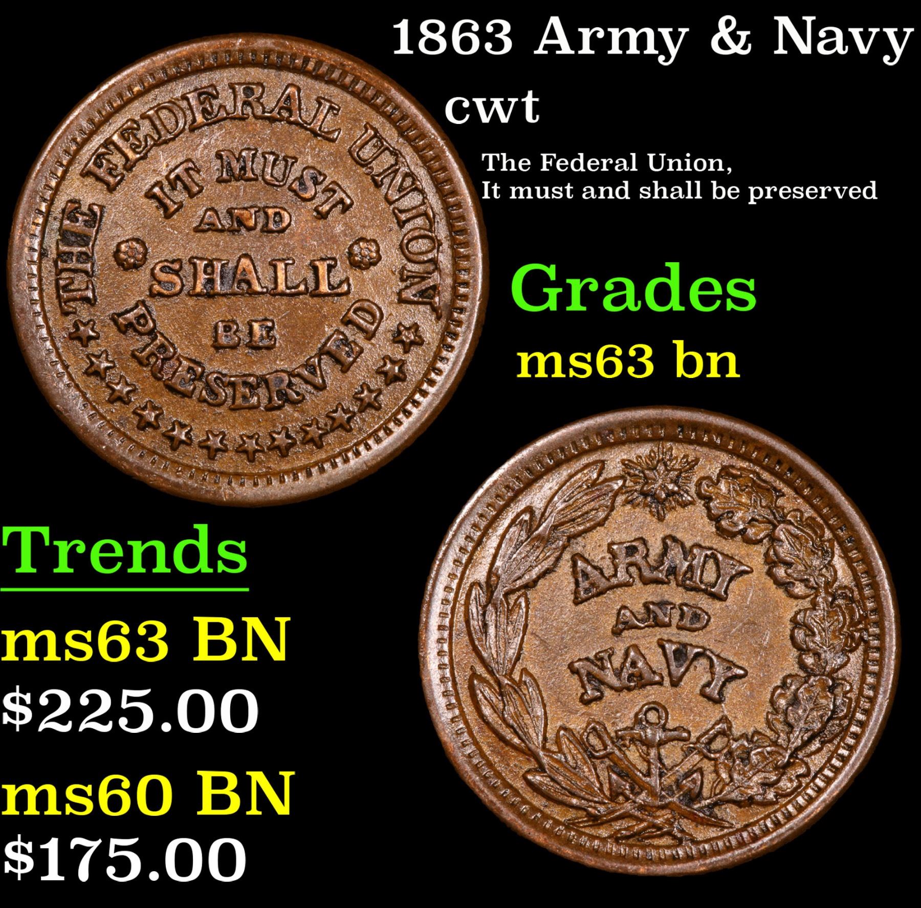 1863 Army & Navy The Federal Union, It must and shall be preserved . Civil War Token 1c Grades Select Unc BN. A Corey's Pick